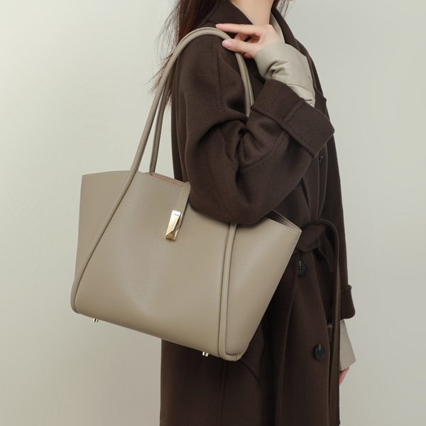 - ポイント:どんなコーデにも合わせやすい上品なグレージュ色のトートバッグ。シンプルで大人の雰囲気を演出、通勤・通学、お出掛けなど、幅広いシーンで活躍します。上質な牛革を使用、手触りが柔らかく、高級感も溢れます。