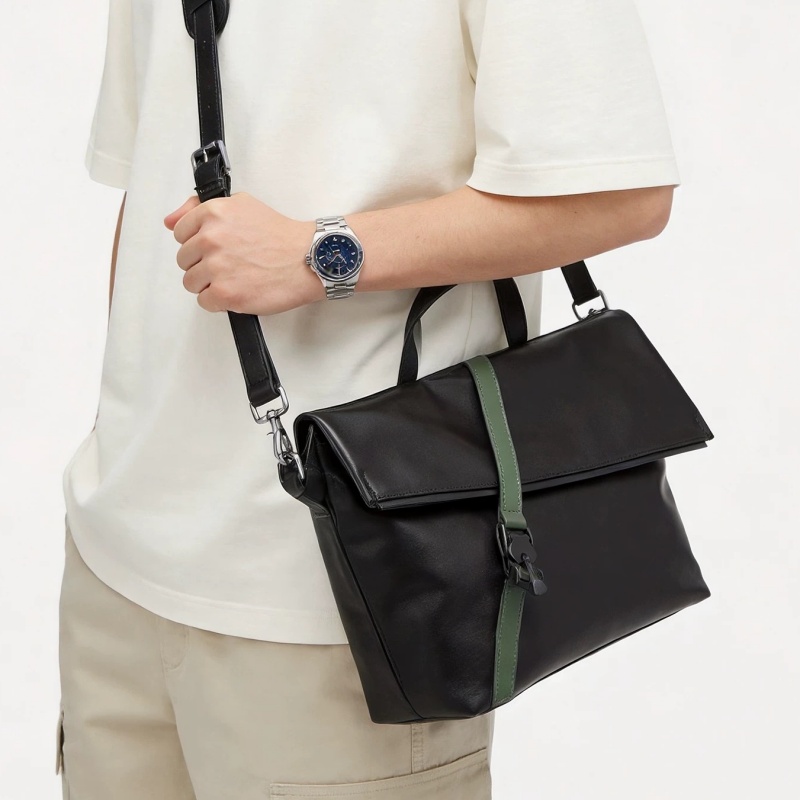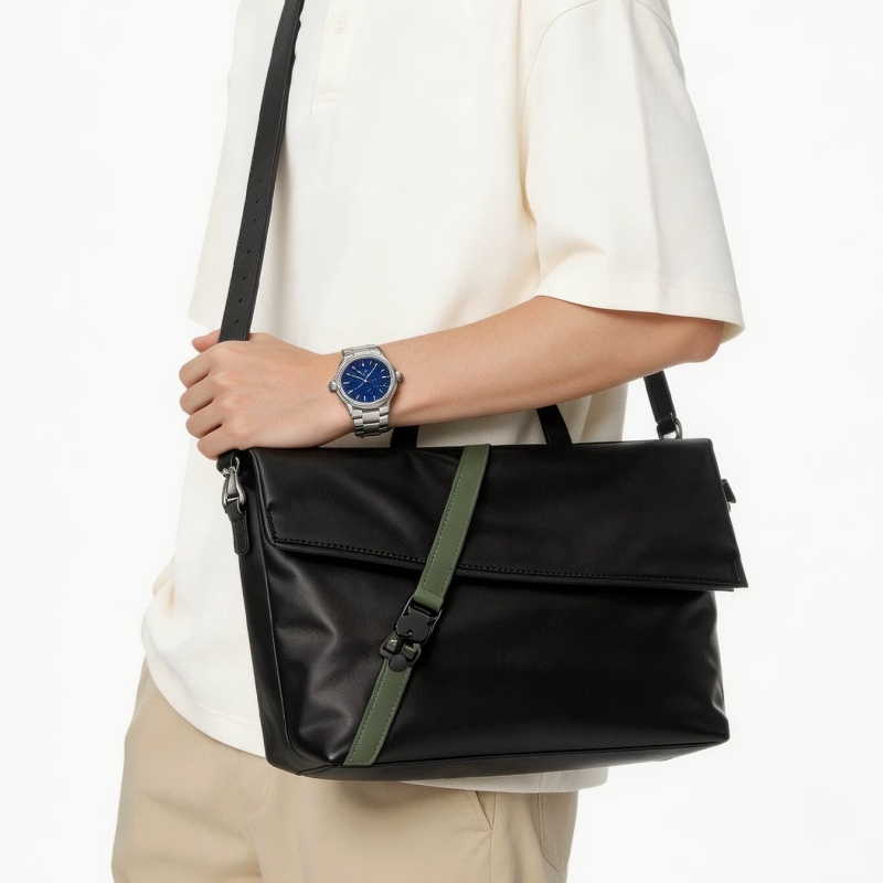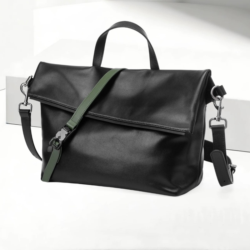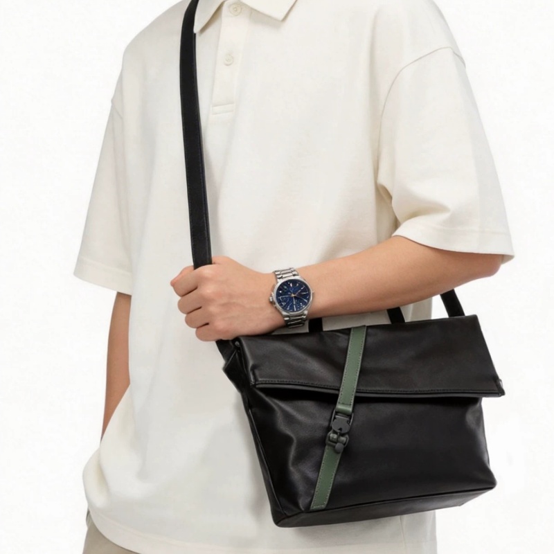 最大の魅力は、フラップを固定するタクティカルなバックルデザインと、上質なレザーのコントラストです。武骨になりすぎず、かといって綺麗めすぎない絶妙なバランスは、ジャケパンスタイルからTシャツ一枚のカジュアルまで幅広くマッチできます!
