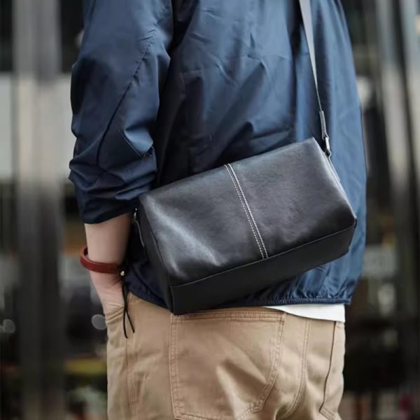 - ポイント:スクエア型のメンズ用ボックスショルダーバッグ最新作です。程良い光沢感とシボ感のあるトップレイヤ牛革を使用し、カジュアル感を出したことで、幅広いコーデに合わせやすいデザインに仕上げた。小さすぎず、大きすぎないサイズ感で、収納スペースには、長財布やスマホなど普段持ち歩く貴重品に加え、折り畳み式傘も収納可能。内側には、鍵など大事な小物を収納できるジッパーポケットも配置されております。旅行やレジャー、ビジネスどの場面のコーディネートでも映えるデザインです!どんなシーンでも大活躍間違いなし!