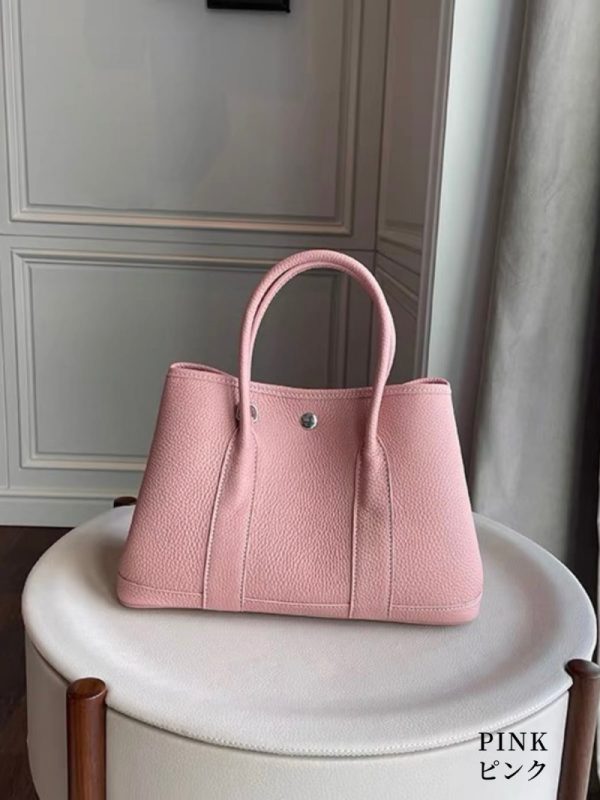 - ポイント:高級感が溢れる牛革ハンドバッグ。高品質な本牛革を使用しており、手触りの柔らかさと独特なシボが特徴。底がしっかりとしており、荷物が多くても型崩れがしにくい。サイドに押しボタン付き、荷物の量によってバッグの形を変化させられ、自由にアレンジできます。バイカラーから単色まで全12色があり、お好きにお選びいただけます。