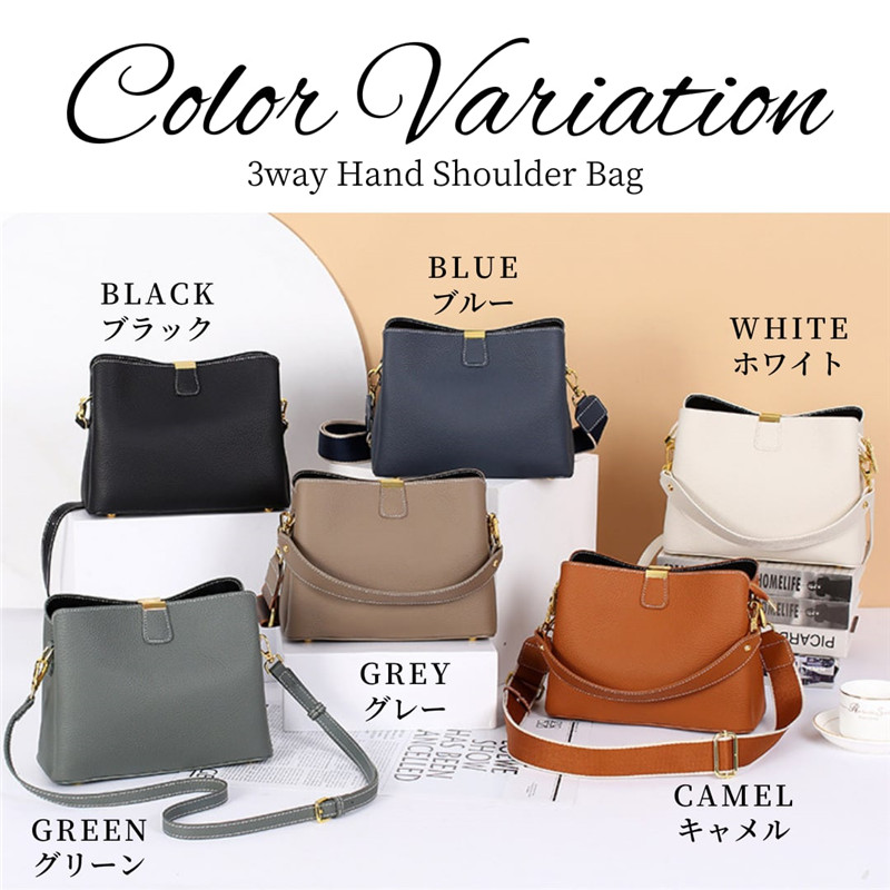 - ポイント:大人の女性が使いやすいセンスのよいハンドショルダーバッグです。しっかりとした牛革素材と細部までこだわった上質な作りで、カジュアルにもフォーマルにも対応できる優秀なバッグです。取り外しのできるハンドショルダーと肩掛け・斜め掛けできるショルダーベルト2本を付属しており、コーデに合わせて自由自在にスタイリングが楽しめます。